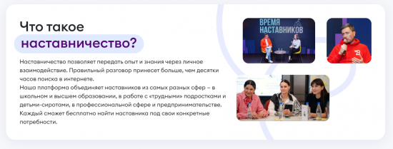 Наставник в проекте «Мои наставники» – это признанный профессионал и лидер в своей области, готовый делиться опытом с молодым поколением.
