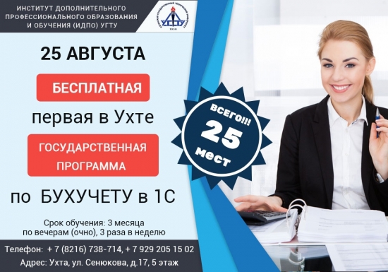 С 25 августа 2021 года Институт дополнительного профессионального образования и обучения (ИДПО) УГТУ приглашает ухтинцев на бесплатную подготовку по государственной программе «Бухгалтерский учет», которая проходит в рамках федерального проекта «Содействие занятости». Совместно с Центром занятости населения Ухты ИДПО поможет выпускникам программы в дальнейшем трудоустройстве.