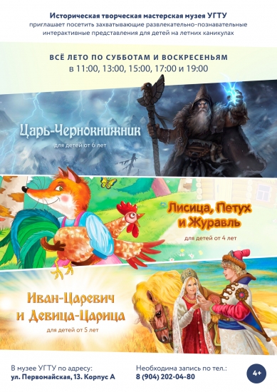 Все лето по субботам и воскресеньям историческая творческая мастерская музея УГТУ проводит представления для детей! Ребят ждут развлекательно-познавательные интерактивные программы: