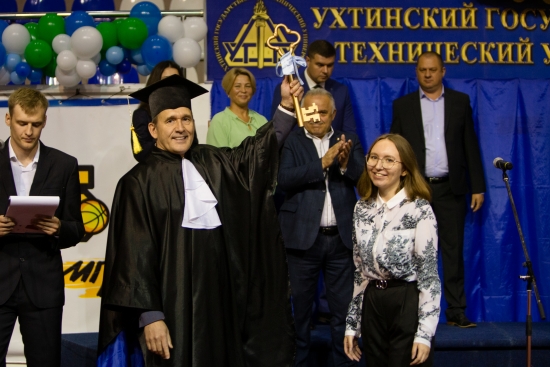 «От всей души желаю вам, чтобы Ухтинский государственный технический университет как можно быстрее стал для вас настоящим домом. И пусть всё, что вы в этом доме наживете – студенческое братство, профессиональные знания, самые разные навыки и умения – пусть всё это служит вам для достижения самых высоких, самых прекрасных жизненных целей!» - обратился к новоиспеченным студентам ректор Руслан Агиней.