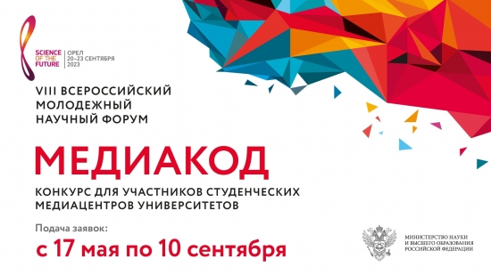 Конкурс рассчитан на студентов и команды студенческих медиацентров. Он проводится при поддержке Минобрнауки России дирекцией VIII всероссийского форума «Наука будущего — наука молодых». Заявки принимаются до 10 сентября на почту mediakod@sfy-conf.ru.
