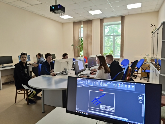 Работа в проектной команде построена следующим образом. Для ребят в течение рабочего дня предоставлен полный доступ к компьютерному классу, в котором они могут чертить схемы в AutoCAD, помогая друг другу, осуществляя перекрестную проверку, да и вообще вместе веселее! Также они могут работать и удаленно. Вся работа контролируется через общий чат в телеграм, куда выкладываются сканы черновиков, которые ребята разбирают и прорабатывают, направляют на проверку. Курирует работу проектной команды ассистент кафедры, аспирант Матвей Денисов.
