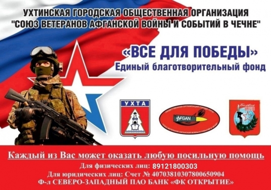 Сбор средств идет через единый благотворительный фонд «Всё для Победы» (реквизиты в прикреплённом фото). Отчёт публикуются в телеграм-канале «Союз ветеранов г. Ухты» https://t.me/desantukha.