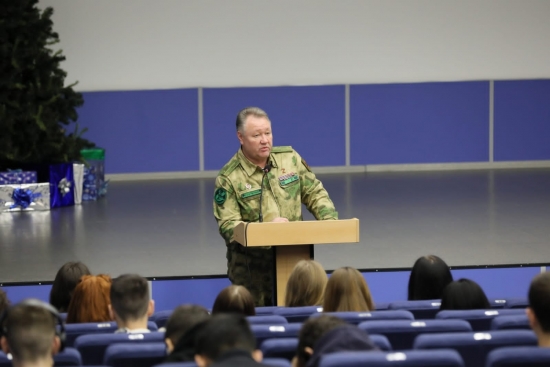 Сергей Юрьевич рассказал студентам об истории возникновения праздника, о героях России и Советского Союза, о том, что ежегодно в честь Дня героев Отечества в Георгиевском зале Кремля проходит торжественный приём, на который приглашаются военные и гражданские лица, проявившие особое мужество и героизм.