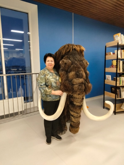 А еще гостья из Ухты познакомилась с мамонтом – теплая встреча произошла в лицейском музее и запечатлена на фото. Кстати, избежать в Салехарде встречи с мамонтом практически невозможно: одним из символов столицы ЯНАО является 10-метровая скульптура мамонта. Жители города ласково называют гиганта Митей.