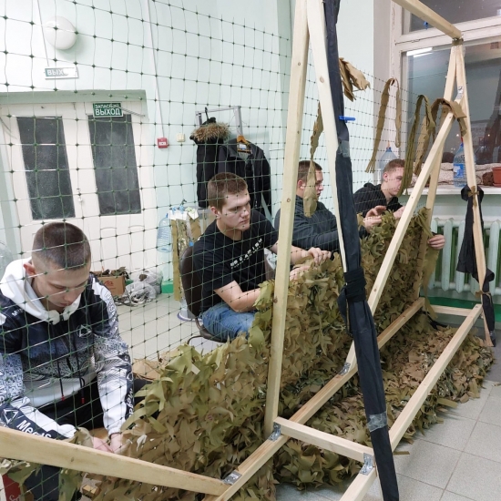 В прошлом году волонтёрам поступали заказы на плетение противоосколочных сетей. Почти все студенты общежития откликнулись и пришли помочь военнослужащим.