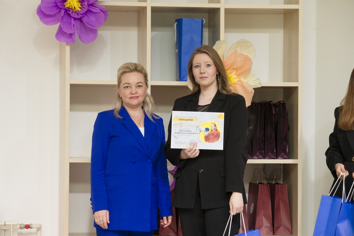 Группу 4 курса М-21о-Б направления подготовки «Менеджмент» отметили как самую активную на факультете, а их куратора, Тамару Саматову наградили благодарственным письмом за сплочение коллектива.
