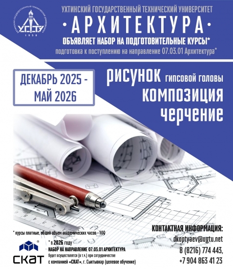 Ухтинский государственный технический университет объявляет набор на подготовительные курсы для абитуриентов, планирующих поступление на направление 07.03.01 "Архитектура".
