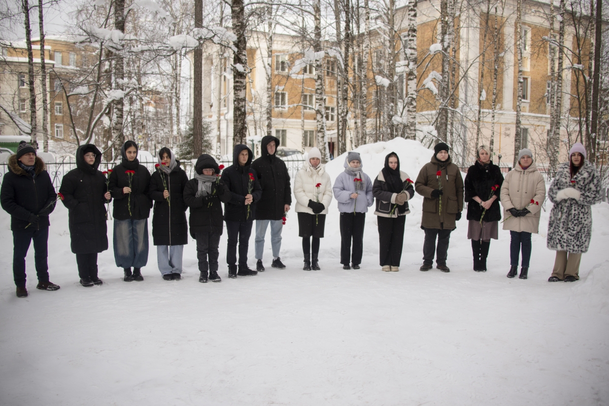 После минуты молчания преподаватели, студенты и сотрудники УГТУ возложили цветы к мемориальной доске.