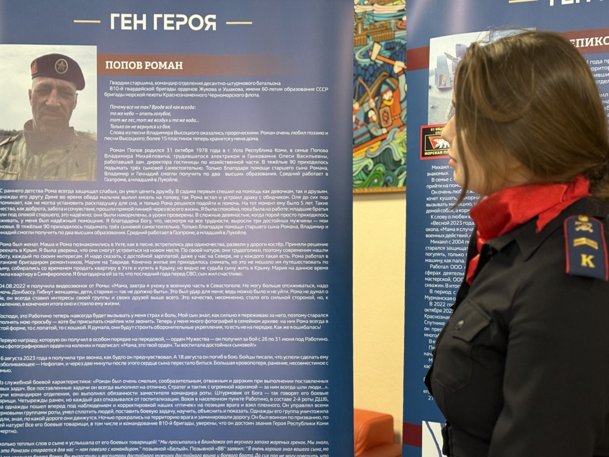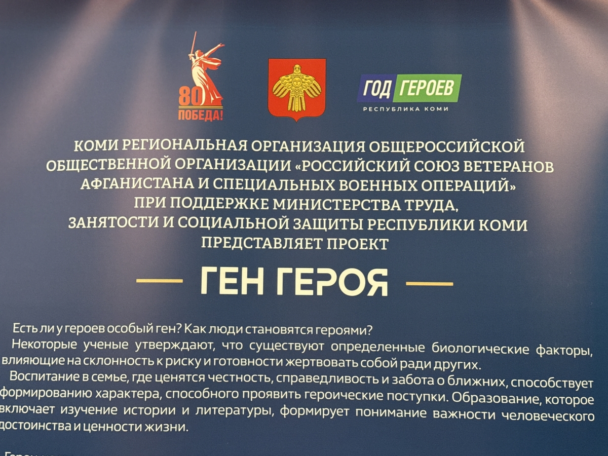 Передвижная выставка ранее находилась в школе №20. Проект «Ген героя» реализован в Ухте и Койгородском районе Коми региональным Союзом ветеранов Афганистана и специальных военных операций при поддержке Министерства труда и социальной защиты Республики Коми.