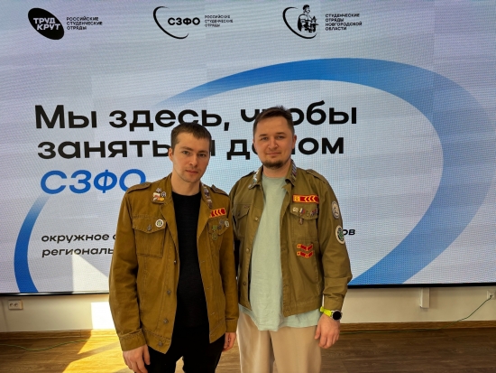 Гостеприимная Новгородская земля с 11 по 12 апреля собирала руководителей 10 региональных отделений Российских студенческих отрядов Северо-Западного федерального округа. Отряды Коми представили на совещании руководитель регионального штаба Анатолий Чемезов и председатель контрольно-ревизионной комиссии Сергей Попов.