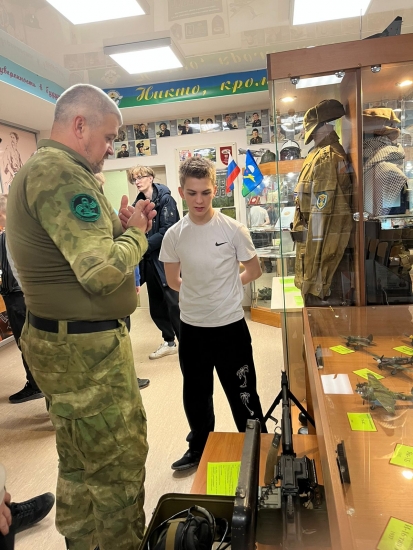 Представитель Усинского Союза ветеранов Афганистана, Чечни и локальных войн Дмитрий Алейник провел для ребят экскурсию по музею, представил экспонаты.