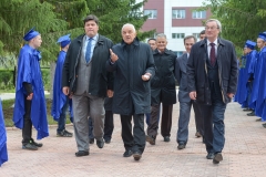Несколькими часами ранее Александр Гайворонский вместе с ректором университета Николаем Цхадая, председателем Попечительского совета вуза, членом Общественной палаты РФ Игорем Шпектором, руководителем администрации Ухты Игорем Михелем и другими высокими гостями принял участие в праздновании начала нового учебного года в Ухтинском техническом лицее им. Г.В. Рассохина.
