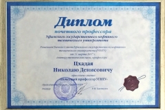 Решением Ученого Совета Уфимского государственного нефтяного технического университета (УГНТУ) от 31 марта 2017 года ректору Ухтинского университета, профессору Николаю Денисовичу Цхадая присвоено звание «Почетного профессора УГНТУ».