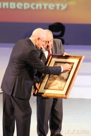 За многолетний добросовестный труд на сцене ГДК торжественно были награждены сотрудники УГТУ: начальник управления делами Т. И. Филипсонс — почетной грамотой Республики Коми, декан геологоразведочного факультета Н. П. Демченко — нагрудным знаком «Почетный работник высшего профессионального образования РФ», доцент кафедры организации и планирования производства Б. А. Витович — знаком отличия «За заслуги перед Ухтой».