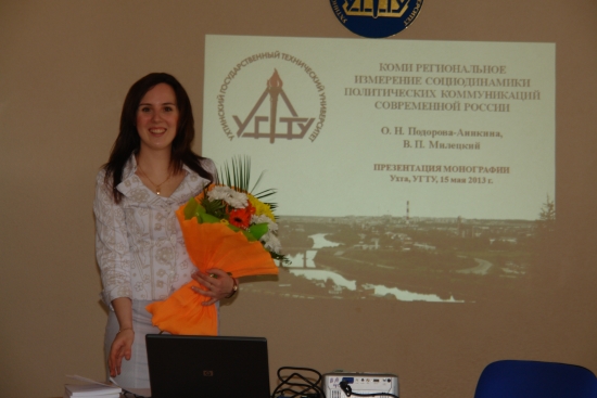 15 мая состоялась презентация монографии «Коми региональное измерение социодинамики политических коммуникаций современной России» преподавателя кафедр «Связи с общественностью» и «Философия, социология, политология» О. Н. Подоровой-Аникиной в соавторстве с доктором политических наук, профессором СПбГУ В. П. Милецким.