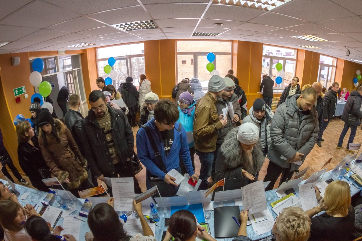В субботу, 19 октября, одновременно в девяти муниципалитетах Коми прошла IX Республиканская ярмарка вакансий. Впервые в программу ее работы вошла видеотрансляция с участием более 20-ти предприятий региона. В Ухте масштабная ярмарка вакансий была организована на базе Индустриального техникума Ухтинского государственного технического университета.