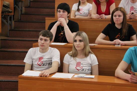 В УГТУ на сегодняшний день существует 8 волонтерских объединений, но не все студенты знают об этом. Поэтому в большую физическую аудиторию в этот день были приглашены старосты и просто активная молодежь, желающая поближе познакомиться с работой волонтеров.
