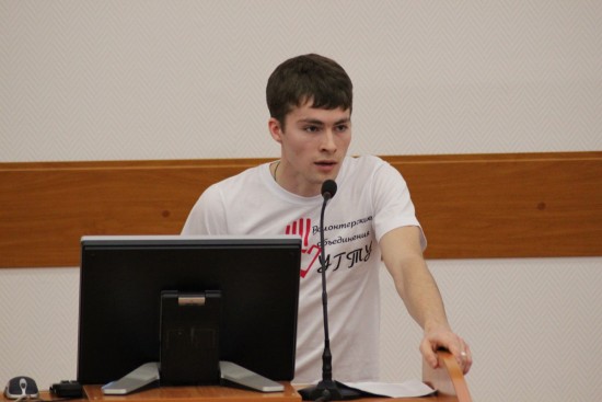 В самом начале пришедшим показали видеоролик о добровольцах УГТУ. С приветственным словом выступил проректор по учебно-воспитательной работе и социальным вопросам. А далее к микрофону были приглашены руководители волонтерских объединений вуза, которые представили свои движения и рассказали о своей работе. Выступающими были подняты актуальные на сегодняшний день темы о людях с ограниченными возможностями и доступной среде, проблемах многодетных семей, детях-сиротах и их социальной адаптации, ветеранах и нехватке простого человеческого внимания нашим старикам, да и просто о нуждающихся в заботе и помощи людях. А Дмитрий Николаевич Безгодов затронул одну из наиболее острых проблем на сегодняшний день — проблему социальной лености.