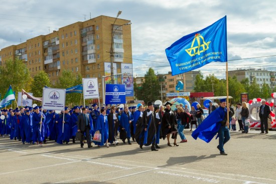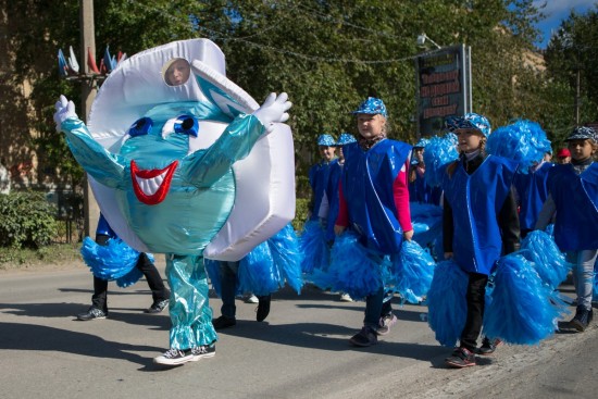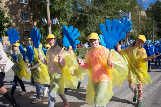 Четвертого сентября красочная колонна, возглавляемая стройными барабанщицами, за которыми следовали, флагоносцы, юные танцоры с разноцветными шарами и главные герои действа Нефтяничек и Газовичок в сопровождении раритетной техники прошли по проспекту Ленина до Комсомольской площади, где их встречали первые лица города.