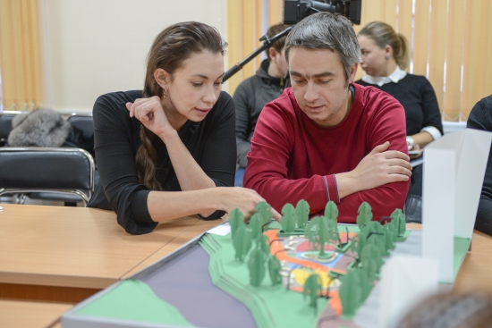 Авторы проекты, студенты 5-го курса кафедры архитектуры УГТУ Роман Зларич и Виктор Миронов (научный руководитель – доцент, к.н. Дмитрий Коптяев) представили на суд совета по два проекта строительства спортивной площадки и сквера на этом месте. Каждый из проектов был изучен членами ГС, которые оценили их достоинства и недостатки с профессиональной точки зрения.