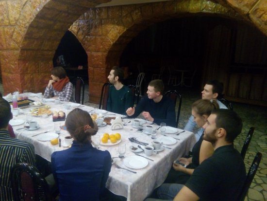 В четверг вечером встреча клуба любителей англйиского языка прошла не в международном отделе, как обычно, а в Старом Замке. И поводом встречи именно там стал ужин, организованный в честь праздника День благодарения.