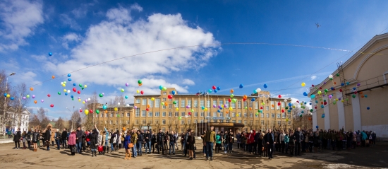 12 апреля на площади перед главным корпусом Ухтинского государственного технического университета состоялся флешмоб, приуроченный к празднованию 55-летия первого полета человека в космос.
