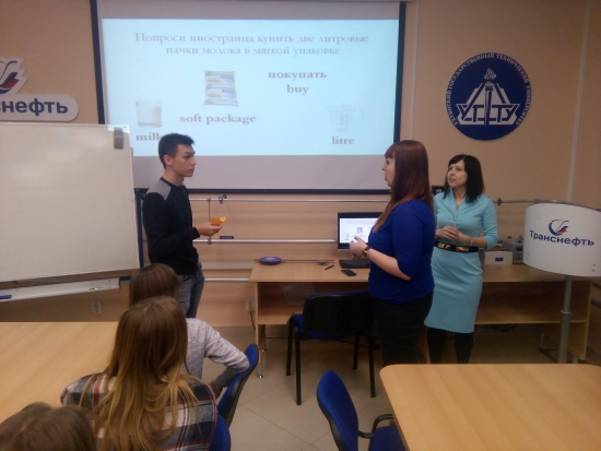 Чтобы не вдаваться в долгие беседы по поводу значимости знания иностранных языков в мире, команда международного отдела перешла к практической части встречи, организовав экспресс игру на английском языке и заодно проверив, насколько хорошо школьники владеют иностранным языком. В этом мастер-классе также приняла участие Сара Джин Миллз – стипендиат программы Fulbright, приехавшая из США на годовую стажировку в УГТУ. Она помогала ребятам справиться с заданиями игры, а в завершении встречи ответила на их вопросы о том, как ей живется в России и как она постигает лингвистические просторы русского языка.