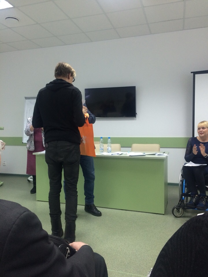 Приятным завершением встречи стало награждение победителей студенческого фотоконкурса «БЕЗбарьерка», который проходил с 5 по 29 ноября 2018 г.  Награды достались студенту Индустриального института (среднего профессионального образования) Александру Ичеткину (группа ТА-1-18) и руководителю волонтерского объединения «Богатырь» Илоне Васиной.