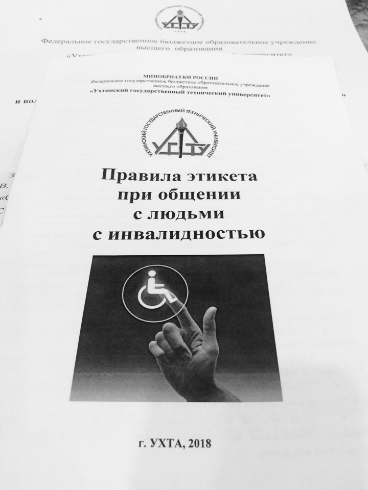 Для сотрудников, которые по роду своей деятельности взаимодействуют со студентами, имеющими инвалидность, и которым предстоит работать в дальнейшем с этой категорией обучающихся, был проведен инструктаж на тему «Обеспечение доступности для инвалидов объектов и услуг в сфере образования на базе ФГБОУ ВО «УГТУ». Каждый участник получил брошюру, в которой изложены основные правила этикета при общении с людьми с инвалидностью. Такие инструктажи проводятся в УГТУ регулярно.