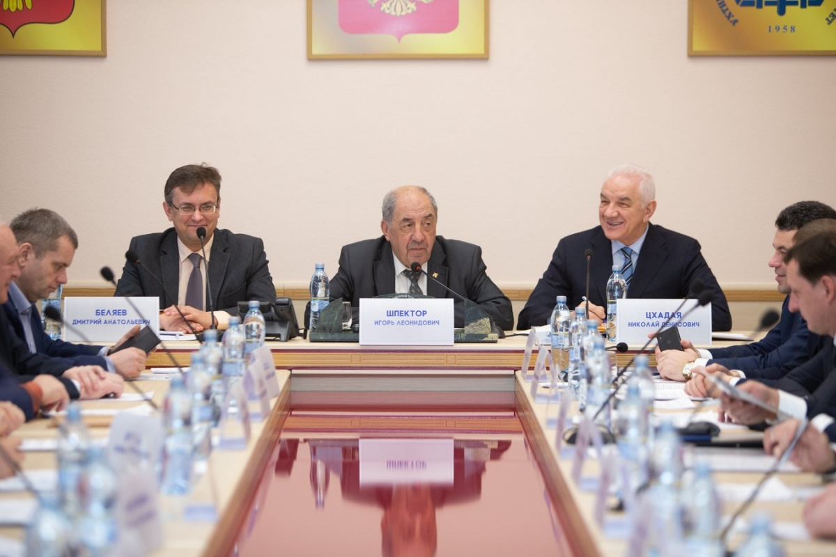 Открывая заседание, председатель попечительского совета УГТУ, председатель комиссии Общественной палаты РФ по жилищно-коммунальному хозяйству, строительству и дорогам, президент Союза городов Заполярья и Крайнего Севера, академик МАЭП Игорь Шпектор традиционно выразил благодарность партнерам вуза за оказываемую университету финансовую и организационную поддержку. К слову, без внимания не остались и заслуги самого Игоря Леонидовича: президент УГТУ Николай Цхадая сердечно поздравил его с высокой наградой – орденом Александра Невского, врученным за достигнутые трудовые успехи, активную общественную деятельность и многолетнюю добросовестную работу на основании соответствующего Указа Президента России В.В. Путина.