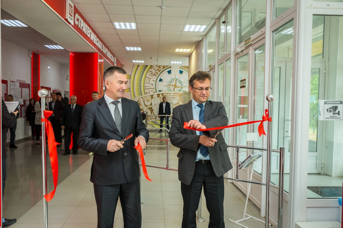 Символическую ленточку перерезали заместитель директора по управлению персоналом НШПП «Яреганефть» ООО «ЛУКОЙЛ-Коми» Геннадий Борцов и врио ректора УГТУ Дмитрий Беляев.