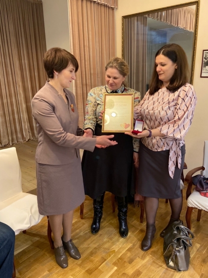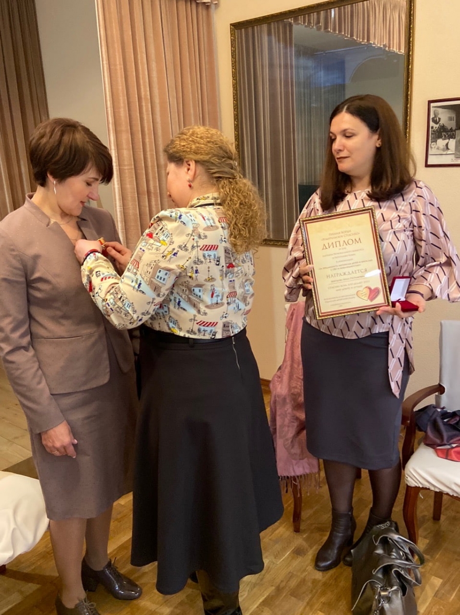 В завершение встречи председатель Коми регионального отделения Всероссийской ассоциации родителей детей-инвалидов Юлия Белоусова, пользуясь случаем, удостоила нагрудным знаком ассоциации «Родительское спасибо» и вручила благодарственное письмо за создание и реализацию проекта по реабилитации детей с особенностями развития «Маленький принц» Инне Безгодовой.