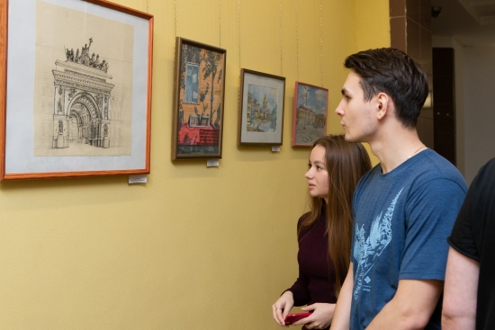 На вернисаже представлено 36 работ в разных техниках: это акварель и графика, выполненная маркерами, перьевыми и гелевыми ручками. В картинах отражены архитектура и природа, цветовые контрасты и нюансы современных архитектурных сооружений, площадных объектов. Всё это – результат двухнедельного пребывания студентов двух курсов – АРХ-16 и АРХ-17 – УГТУ в Санкт- Петербурге.