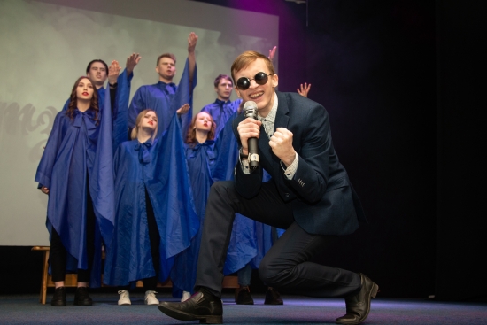 «Хор выпускников» во главе с солистом Эдуардом Гущиным повеселил от души. Классный номер «Последнее направление» про студента, который вновь и вновь пытается сдать долги, сценка про собрание студсовета, про старосту, про прохождение практики, про жизнь в общаге – всё это близко каждому, кто прошёл студенческий путь или ещё учится.