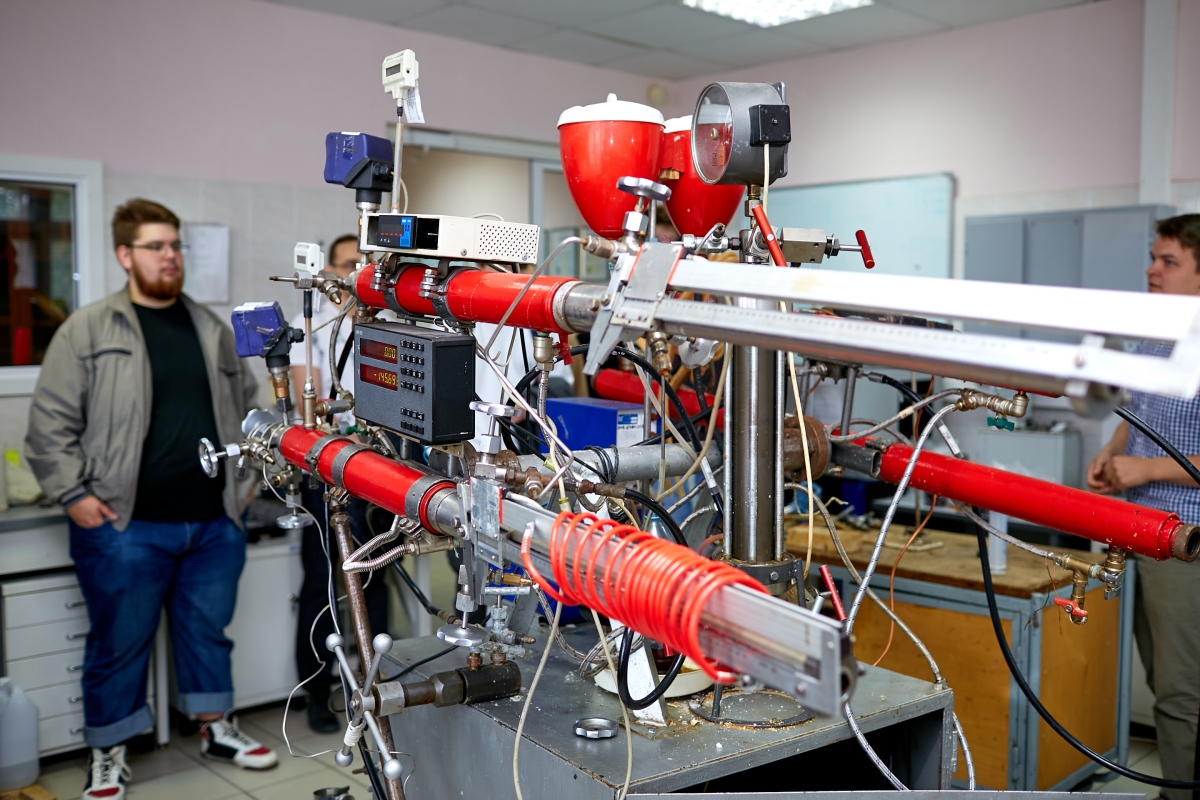 Во втором отделе лабораторного комплекса студентам были продемонстрированы различные агрегаты для изучения свойств флюидов в пластовых условиях – термостат, PVT-установка для газоконденсатных термодинамических условий, сепаратор и ультразвуковой излучатель.