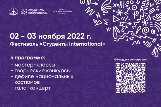 Со 2 по 3 ноября 2022 г. в Ухте на базе Ухтинского государственного технического университета пройдет фестиваль «Студенты International». Проект реализуется при грантовой поддержке Федерального агентства по делам молодёжи (Росмолодёжь). Фестиваль соберет студентов от 18 до 30 лет, обучающихся в образовательных организациях Республики Коми, в том числе прибывших из стран ближнего и дальнего зарубежья и познакомит их с культурой и традициями разных стран.