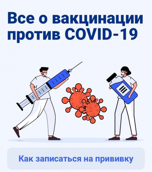 Чтобы записаться на вакцинацию на Едином портале государственных услуг, нужно выбрать услугу «Запись на приём к врачу». В карточке услуги выбрать поликлинику, должность «врач-терапевт (вакцинация)» или «Вакцинация от COVID-19». После выбора должности выбрать «Кабинет вакцинации от COVID- 2019», удобное время и записаться.