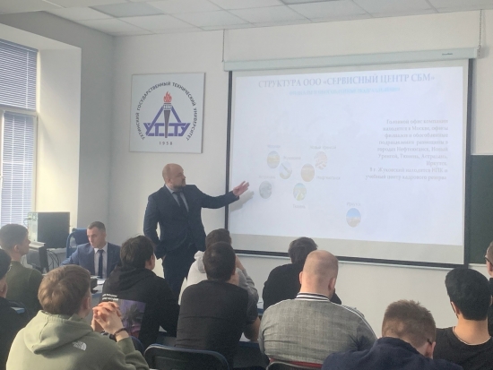 20 апреля в УГТУ прошла встреча студентов 3 и 4 курса специальностей НГФ с представителями компании «Сервисный центр СБМ». Делегацию представили заместитель генерального директора по технологиям и советник генерального директора компании – выпускники Ухтинского университета.