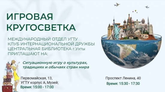 На двух площадках, практически одновременно, будет проходить ситуационная игра «Кругосветка» о культурах, обычаях и традициях стран мира: