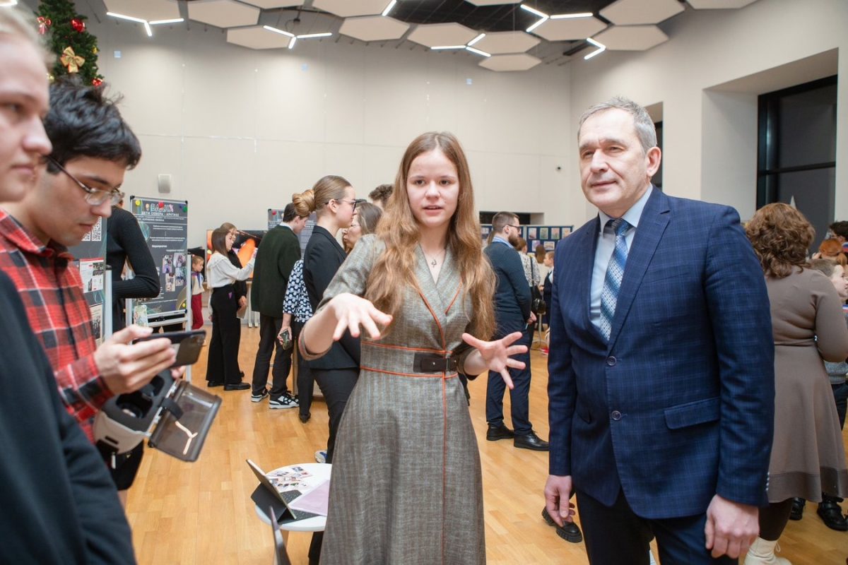 Ректор УГТУ, профессор Руслан Агиней тепло приветствовал участников и гостей выставки, а также с искренним интересом осмотрел стенды, особо отметив «Коми нОбук» Ильи Машкова, посвященный созданию информационного пространства для изучения Коми языка».