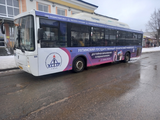 С середины марта по Сыктывкару вновь курсирует автобус, украшенный рекламными баннерами и символикой Ухтинского университета.