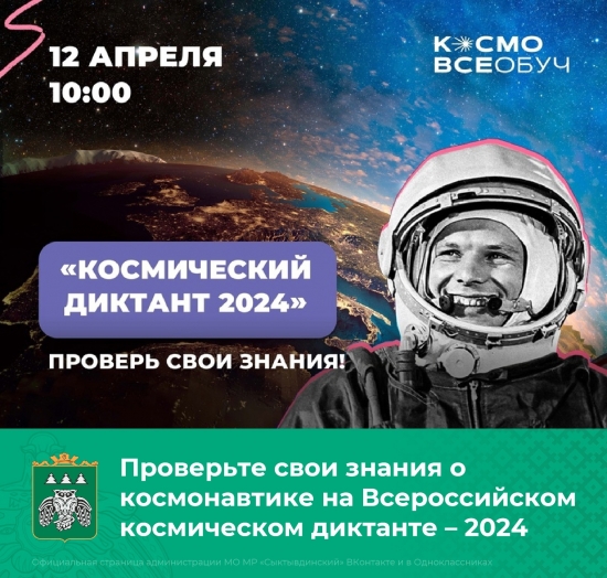 Всероссийский космический диктант – 2024 пройдет 12 апреля в День космонавтики в 10:00 в формате онлайн на сайте Космовсеобуч.рф