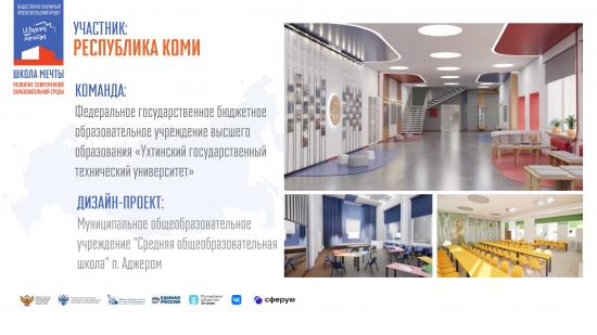 Напомним, что студенты УГТУ принимают участие в проекте второй год подряд. В прошлом году дизайн-проект получил одобрение Главы Республики. Ребята разработали дизайн Выльгортской средней общеобразовательной школы №2, в которой также воплотили свое видение современных пространств для учебы, развития и отдыха.