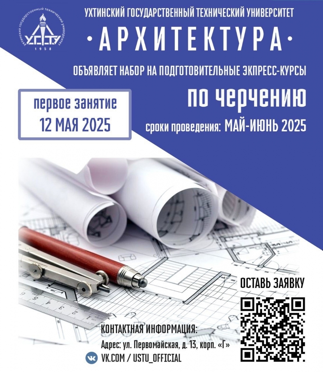 Мы рады сообщить, что Ухтинский государственный технический университет запускает подготовительные экспресс-курсы по черчению. Эти курсы идеально подойдут для тех, кто планирует поступать на направление «Архитектура» и для всех, кто собирается сдавать экзамен по черчению.