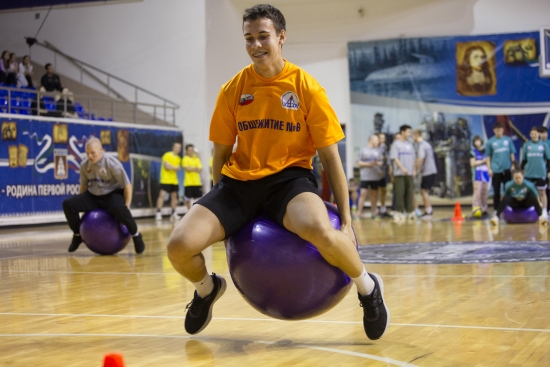 Веселые старты прошли в форме эстафеты – сотрудники кафедры физической культуры УГТУ придумали необычные этапы, усложненные особыми условиями и использованием разных спортивных снарядов.
