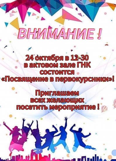 Завтра, 24 октября, состоится самый яркий, самый значимый и, несомненно, самый долгожданный праздник для каждого первокурсника – день посвящения в студенты!