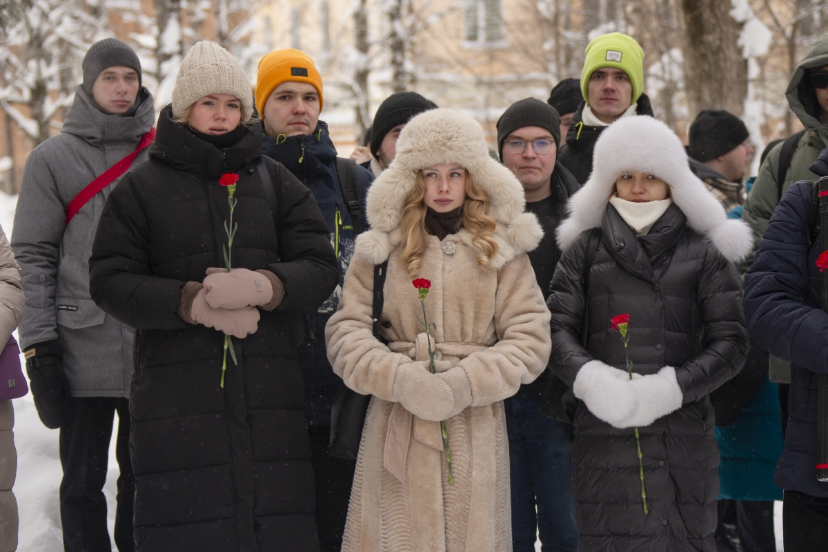 После минуты молчания преподаватели, студенты и сотрудники УГТУ возложили цветы к мемориальной доске.