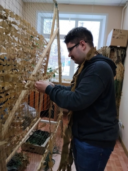 Бригада студентов-добровольцев Усинского филиала УГТУ уже давно стала неотъемлемой частью большого движения по плетению маскировочных сетей для СВО. И это не разовая акция, а постоянная работа! Ежедневно, без выходных и праздников, эти ребята активно участвуют в изготовлении маскировочных сетей и комплектующих к ним.